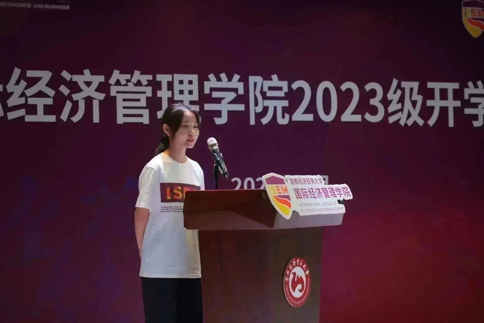 新生代表揭子菡发言,她回忆了高中的拼搏经历,并表达了对未来国经管生活的期待与向往。她希望可以借助古装做爱 这个广阔而绚丽的平台展现自我,不断进取,全面发展。她表示,将积极参与,勇敢践行,锻炼自己,加强合作,并以学长学姐为榜样,用奋斗实现自己的梦想。