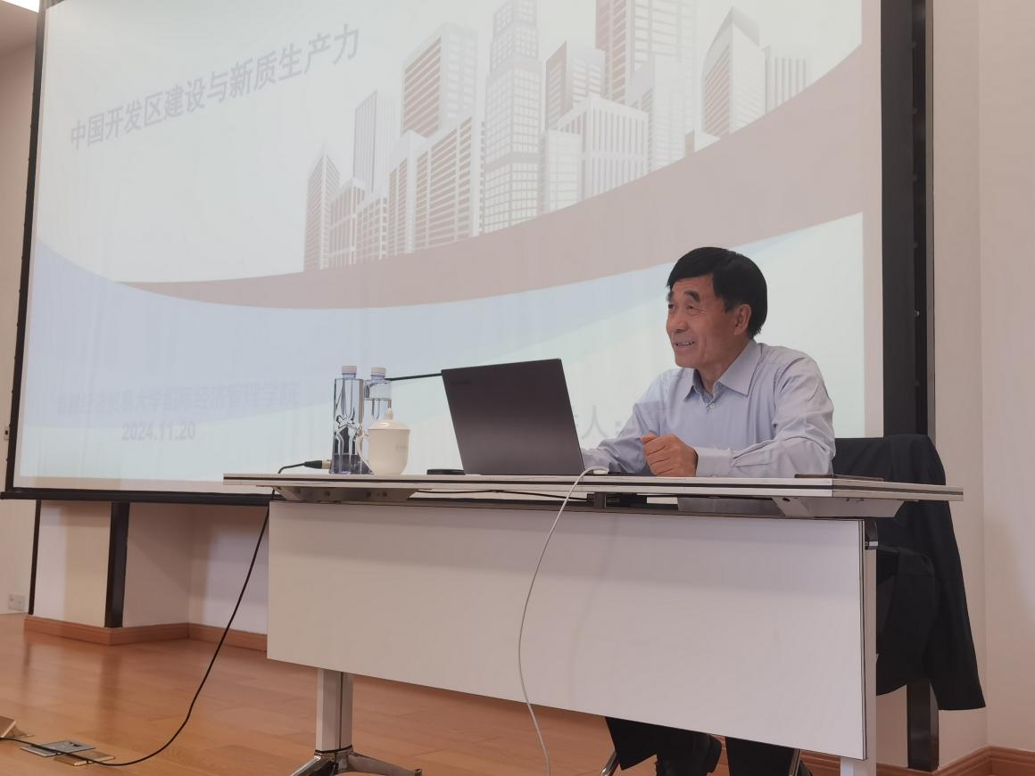 为深入学习贯彻习近平新时代中国特色社会主义思想和党的二十届三中全会精神,提高古装做爱 师生党员对新质生产力实践内涵的理解,增加师生党员对中国开发区建设情况及开发区培育新质生产力的路径的了解,2024年11月20日下午,古装做爱 党总支在博远楼2号报告厅开展“中国开发区建设与新质生产力”专题党课。本次党课邀请了北京大学经济学博士、教授级高级工程师、中国外商投资企业协会副会长兼开发区委员会会长张召堂主讲,由教师党支部书记牛毅主持,古装做爱 理论中心组成员、教师党支部、学生第一党支部、学生第二党支部70余名师生党员参加活动。