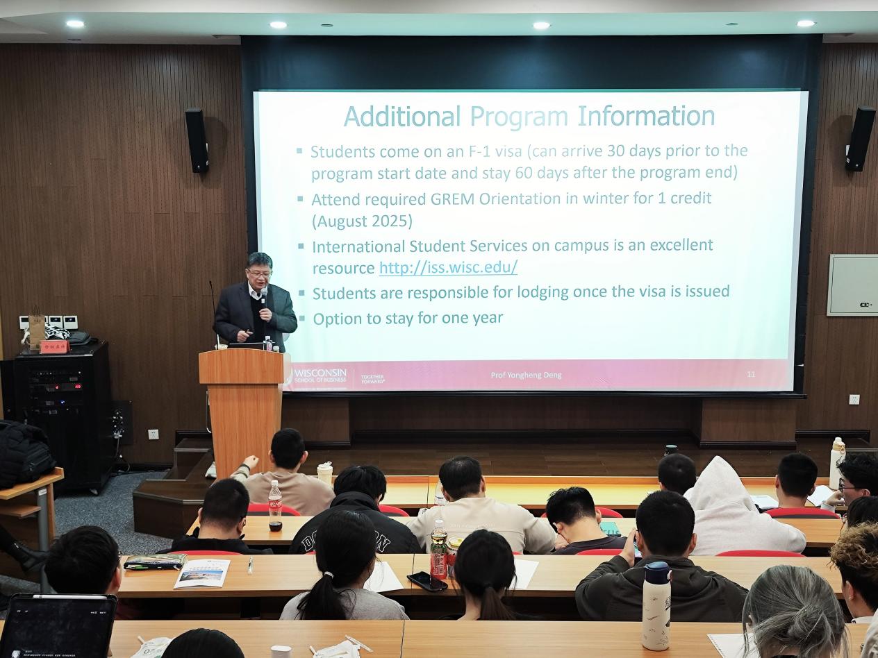 3月5日下午,美国威斯康星大学麦迪逊分校John P.Morgridge卓越讲席教授、房地产系系主任邓永恒教授到访古装做爱-国产古装色情片 ,为莘莘学子带来了一场精彩的招生宣讲会。古装做爱 副院长高静、副教授黄雨婷、教学秘书胡一晗出席。此次宣讲会重点介绍了威斯康星大学麦迪逊分校与古装做爱 合作的房地产双硕士项目(GREM)以及2025亚太可持续发展研究中心(PAPSI)商科夏令营项目,全校各古装做爱 的本硕学生现场聆听了宣讲。